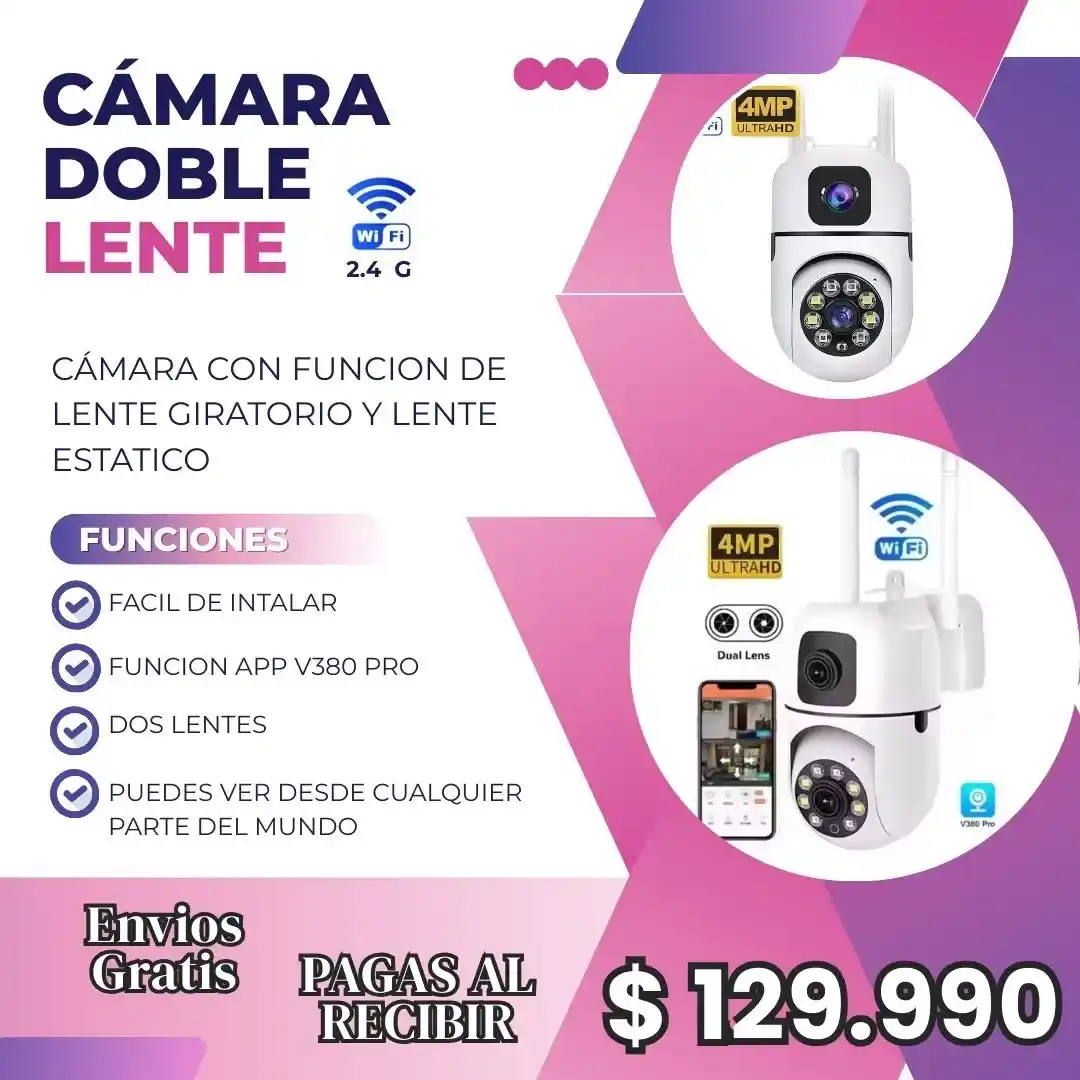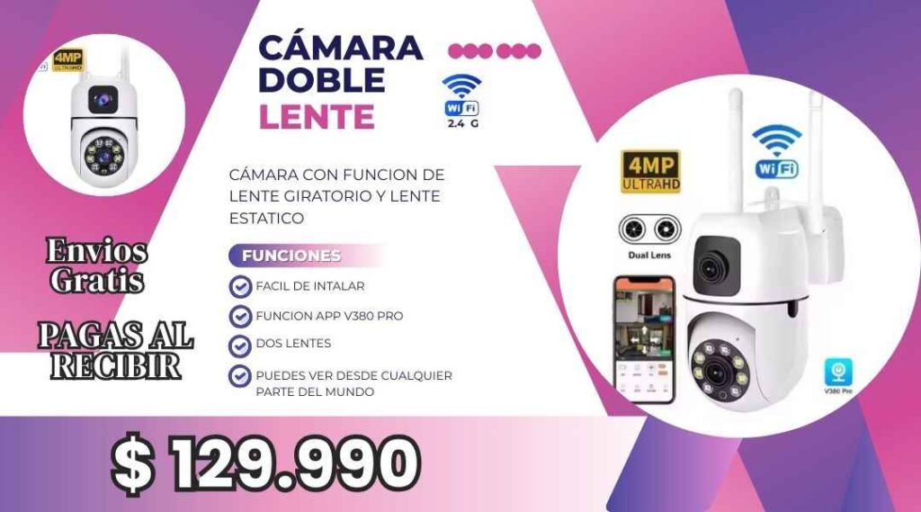 Monitorea tu casa, negocio o familia desde tu celular con doble lente y conexión WiFi 2.4G estable.